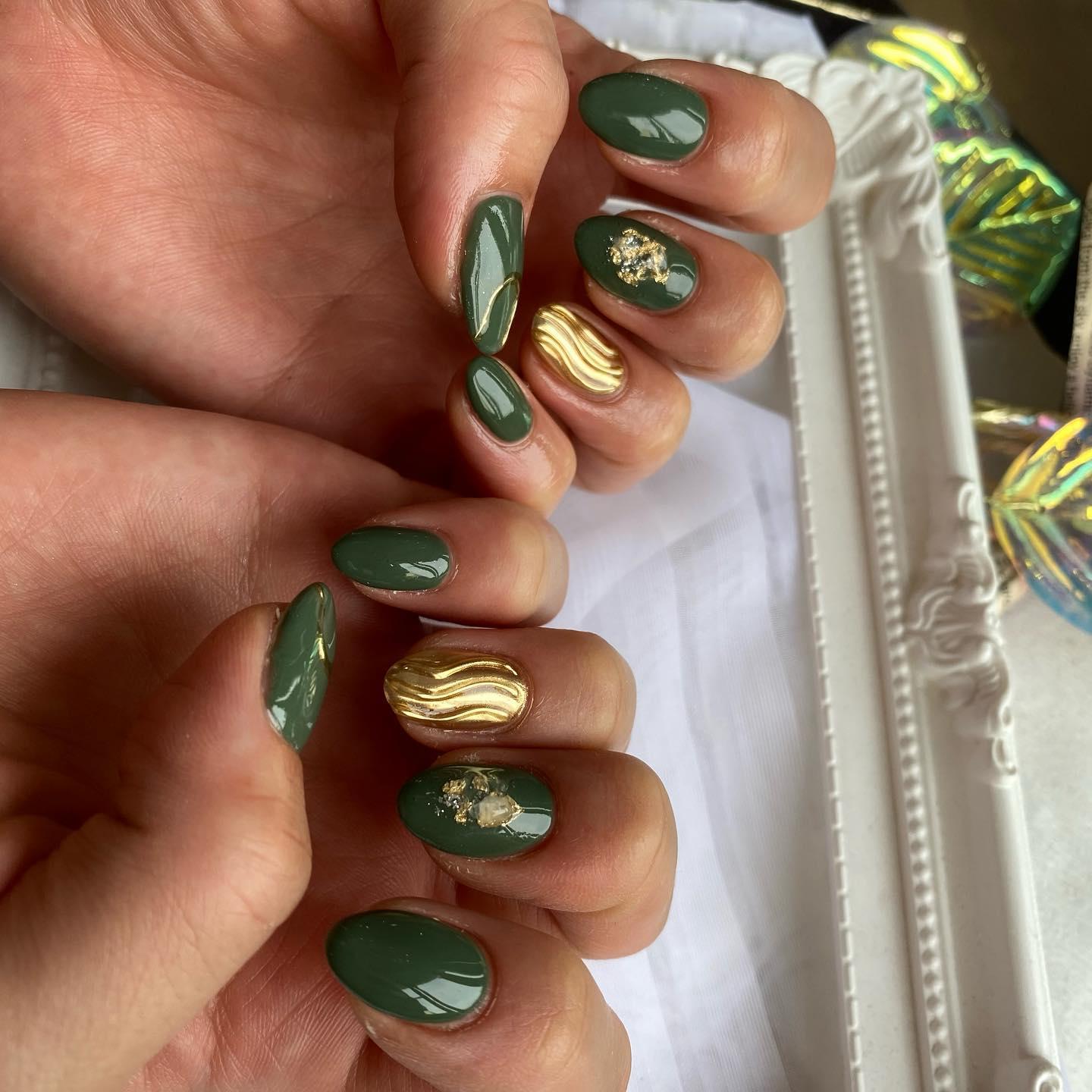 #azurnail グリーン×ゴールド♪♪